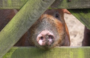 Pigs’ snouts are remarkable things. They are part bulldozer, part perfumier’s sensitive olfactory organ to sniff out stuff underground. It is fascinating to see them rootling away through soft turf, just ploughing up the ground with their nose. Even more impressive when the ground is hard. I would like to think that the deconstruction of the water trough was a scheme on their part to provide damp conditions to snuffle and wallow to beat the hot weather. I am not sure that they are that intelligent – but then who knows? Images of Animal Farm spring to mind.