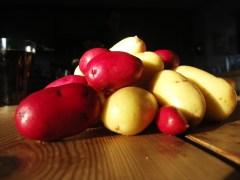 And even when your plants do well, you cannot always be sure what you will harvest. Lynn kindly provided us with a whole host of different chitting spuds, from Belle de Fontenay second earlies to Sarpo Mira Main Crop. I carefully planted each type in its own row and assiduously labelled each one accordingly. What soon became apparent when the spuds came up was that they were not necessarily uniform rows: the tops were clearly different, and since the destruction of the plants by blight, I havent’ a clue what I am going to find. This week we dug several roots of potatoes that are like no other we have planted – so while one root is clearly Setana, the next is bright red – maybe Duke of Yorks? Who knows. But it brings even more excitement to an otherwise mundane task fo digging spuds.