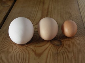 Elsewhere, the hens continue to lay well, but who is laying what is a mystery as the three from the other day show: mummy egg, daddy egg and baby egg: double yoker, single yoker and, well, “could do better if she tried”.