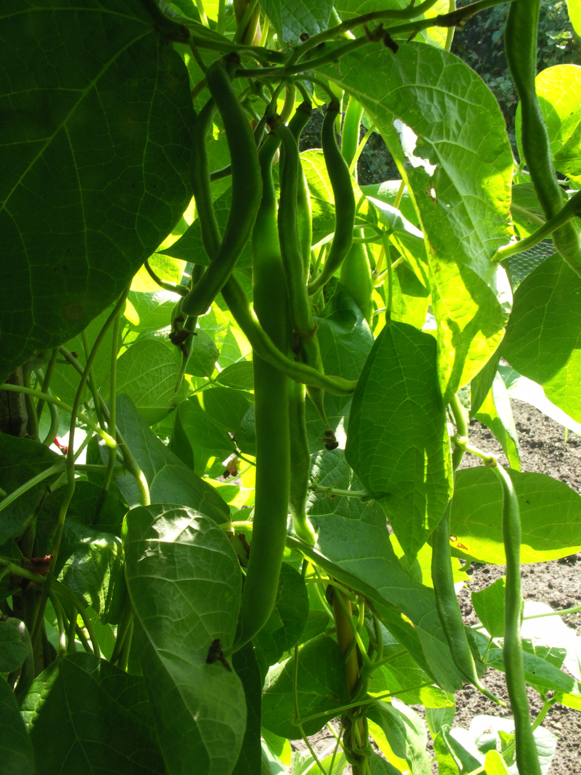 Harvesting runner beans is the equivalent of plate spinning: you check each row every day and try to pick every bean that is of the required size: not too skinny, but not too fat and stringy. But somehow you always manage to miss a couple so next day you see a cucumber sized bean hanging in the green shade. If you left it another day, you feel it would pull the whole plant over, such is the apparent speed with which they grow.