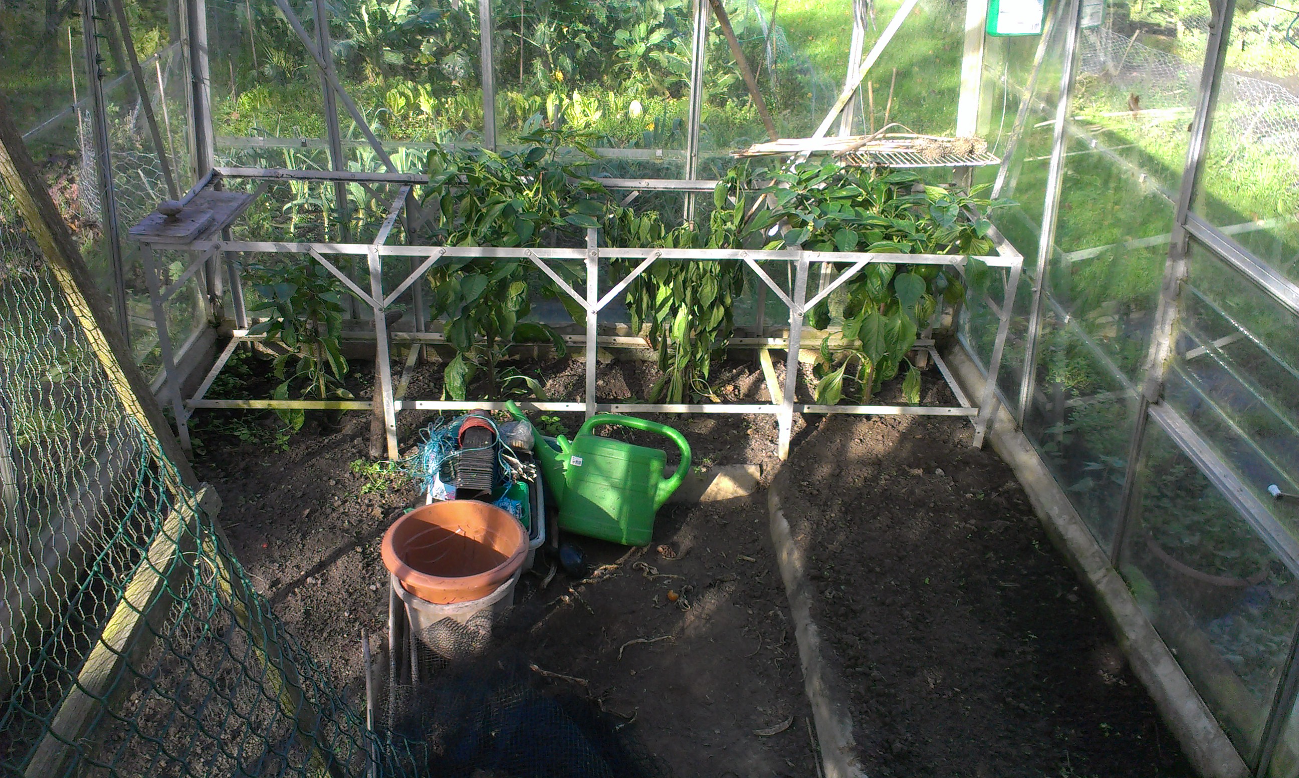 The greenhouses are almost clear too: the tomato plants seemed to bear fruit way longer than I was expecting – but finally we had to say goodbye to them and put them to compost too. And I harvested the last the green peppers before they died: 17 green peppers which will go in the freezer.