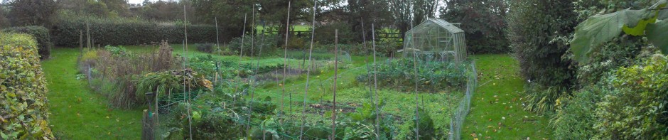 But it wasn’t only digging up and composting that needed to be done. With the so-called storm of St Jude due, I took the precaution to make sure that what veg there are in the garden would still be standing come daylight. So I staked the white sprouting and green calebrese, as well as the Brussels sprouts which really have sprouted in the warm autumnal air. Thankfully they survived what turned out to be a bit of a damp squib of a storm: nothing like the great 1987 storm when whole forests seemed to be devastated. All we had around us was one telegraph pole leaning slightly precariously towards the main road with a van from the power company parked next to it all day with its hazard warning lights on.