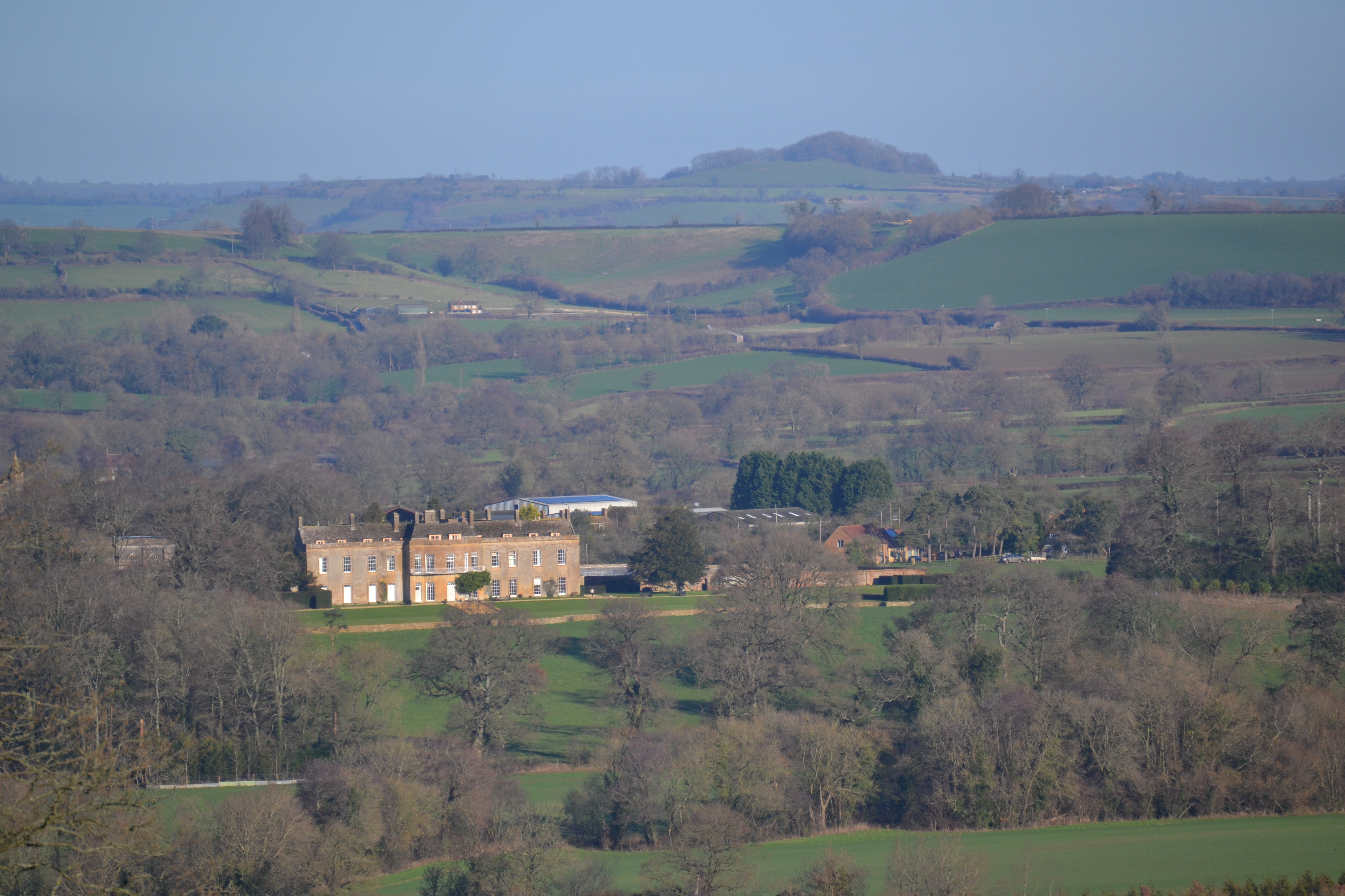 The view of the Court from the Castle. Creech Hill on the horizon