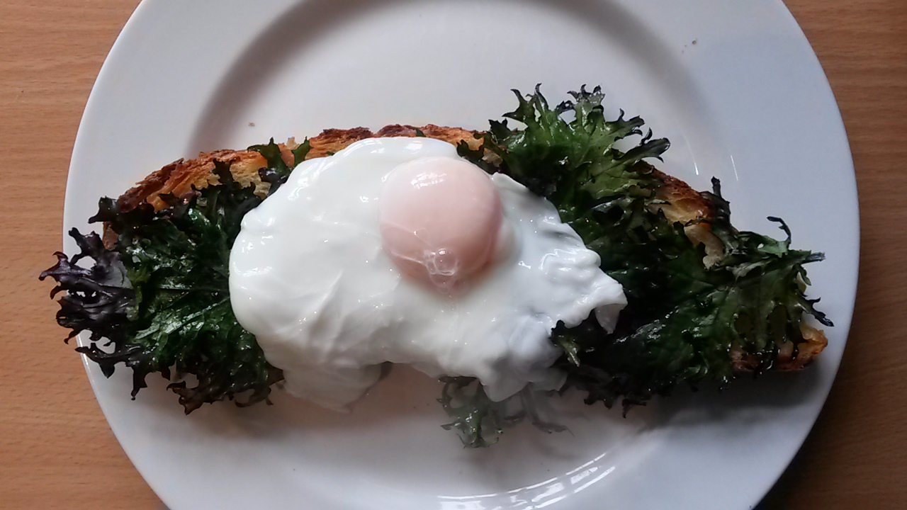 Fresh egg on fresher kale