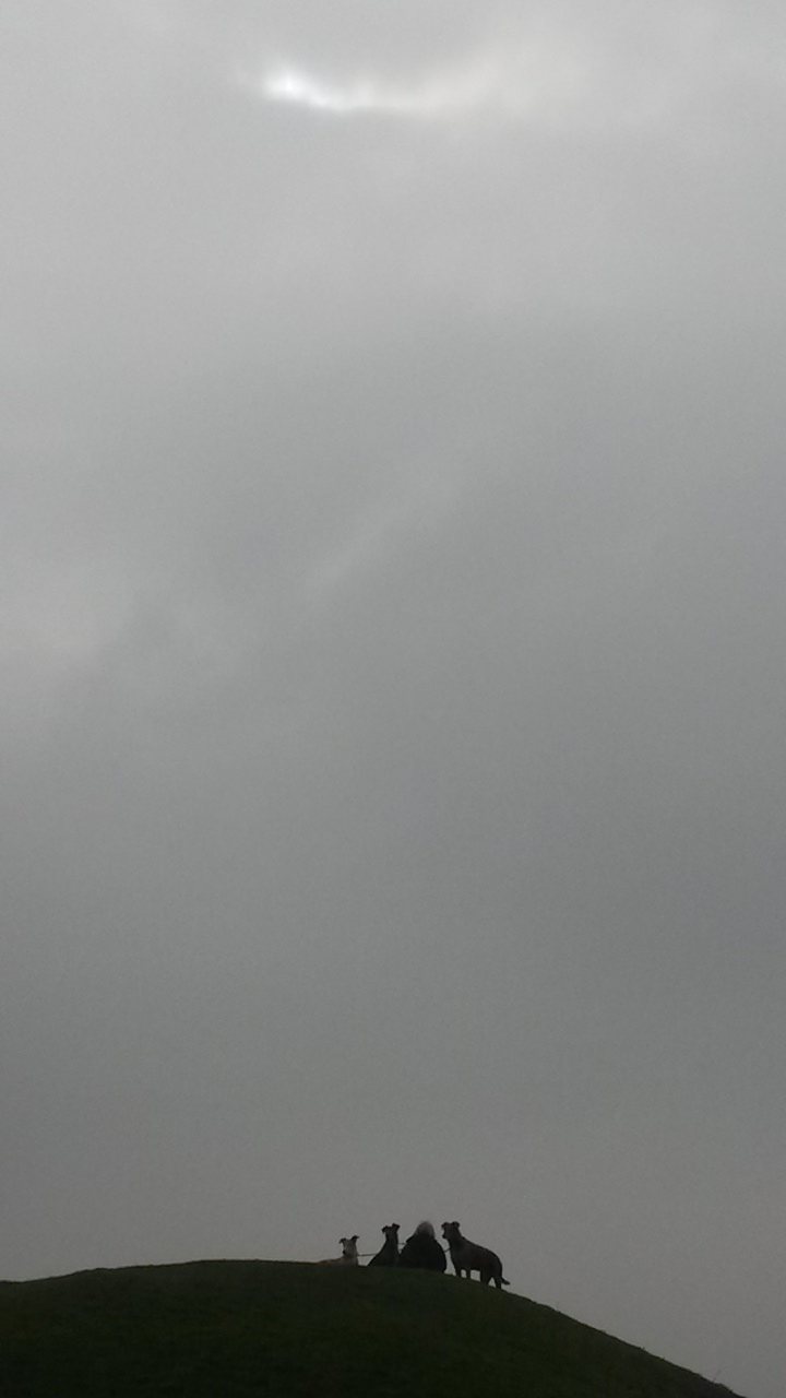 Woman with dogs (and no sight of the eclipse)