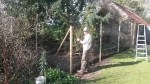 The major event this Easter has been the return of Chickens to the estate. After a few site meetings Jim had delivered the posts and wire and between us we had dug three-quarters of the way around the area to be able to dig the fence in. The gate was a slight issue as we needed to make one, so Jim and I suggested to the OM that he might like to dust off his old woodworking skills and throw one together. He demurred although he did have what Jim and I both agreed was a good idea to hang the non-existent door from the end of the cow stall instead of securing a square post. TOM decided to advise me on the size of drill bits, wood and other practical matters to aid me in my task. “They are in the top shed” he told me. Such instructions of little use. He might as well have said they were on Mars. I would have had more chance of locating them in outer space than in the heaps of old tools, wood and machinery in his shed.