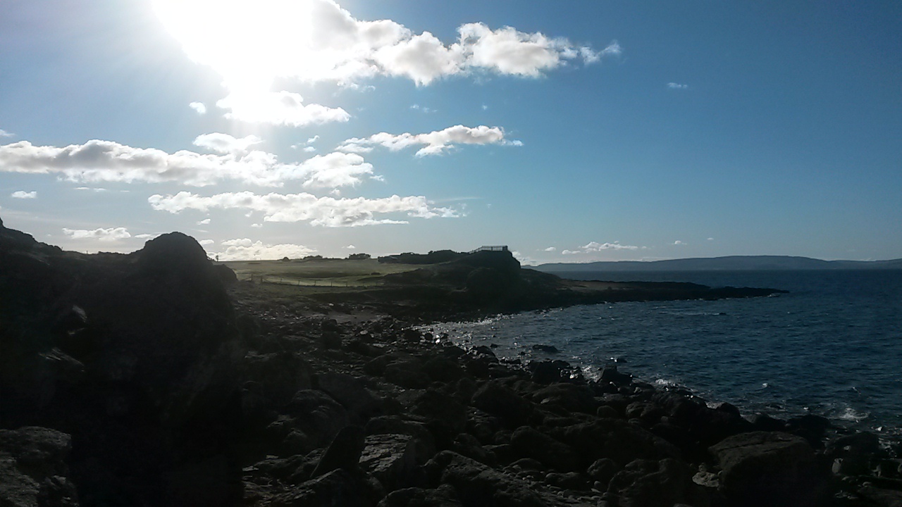 The weather for days one and two was perfect: clear blue skies and little or no wind. So the emphasis was on outdoor activities. We arrived at lunchtime on Sunday and went down to the beach at Blackwaterfoot. Ella was reticent at first, being spooked by wagtails amongst the rocks but, once she had paid her nervous respects to a dead seal, she was soon galloping across the sandy beach, chasing oystercatchers (into the water and over her head) and generally checking out all the olfactory diversions that the beach and headland offered.