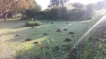 The sun lay on the grass and warmed it. And across the expanse of green the midlife gardener looked and saw the soft volcanic shaped mounds of light brown earth stretching before him. The moles had been working hard over the past week, striving to excavate their tunnels under the lawn and pushing the soil from the darkness to the harsh sunlight above.