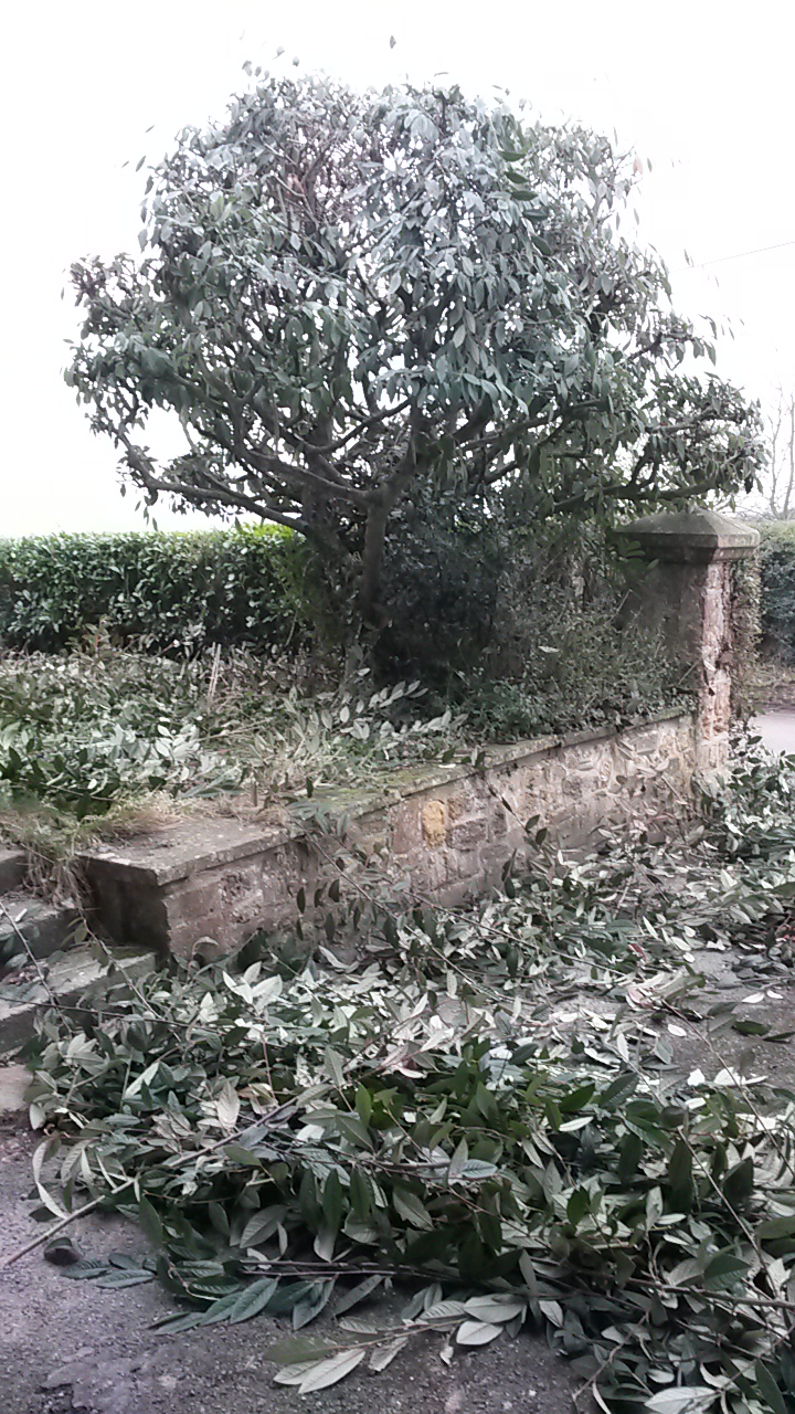Elsewhere more timber fell as I started to trim the infamous Cotoneaster out the front of the house. Mrs B told me to spend twenty minutes on it then come in for tea. She is always looking out for my physical welfare. But once you start, it is just so difficult to stop, and in the absence of any off-spring to offer assistance or even do it themselves, I cut it down to size in a little under 90 minutes. I was aching the next day, from all the clambering around in the tree, but it had been a good job jobbed.