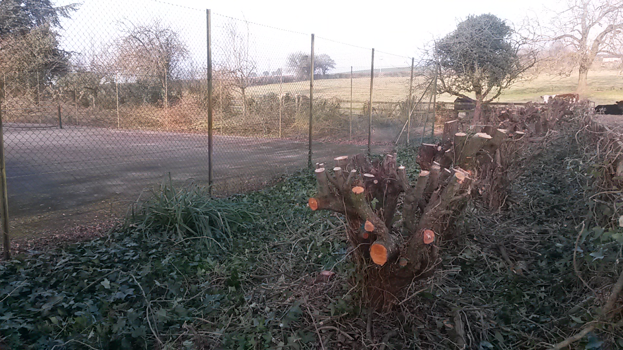 This weekend has been wet and dismal on so many fronts, and the only thing being chopped down was The OM who took a midnight fall on the flagstone floor of the kitchen and is currently residing in hospital looking bruised and bloodied. He has the sort of injuries Mrs B was concerned I might sustain on the Cotoneaster, but hopefully he will be fine and I suspect it will not stop him directing operations for the final assault on the long side of the tennis court. Brother H has gone in to see him today.