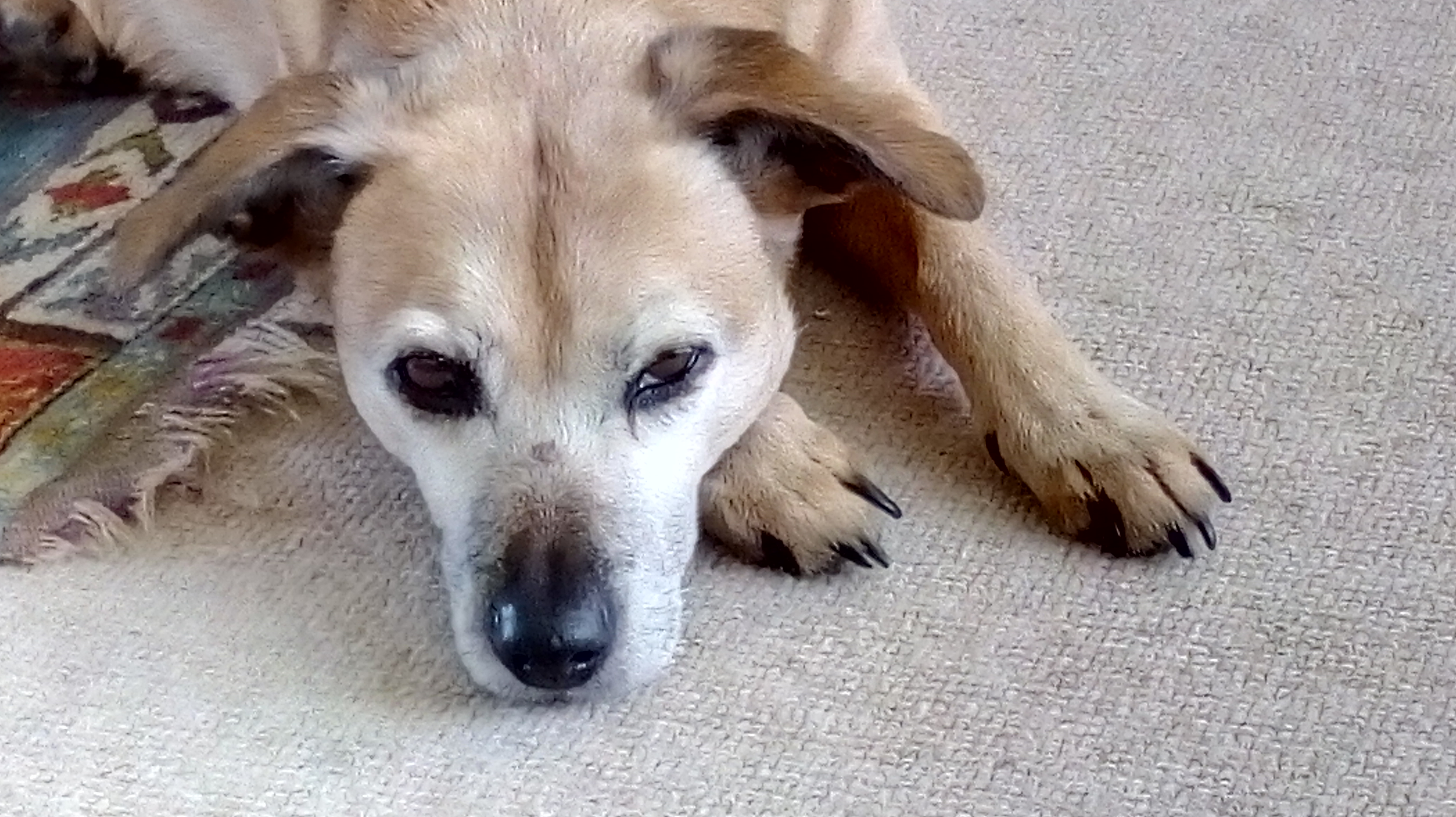 Fudge is, physically, in remarkably good shape for a dog of her age (we reckon she is about 14), but mentally she is a dementia case. She obsesses about stuff – God only knows what. At least with the other pensioner in my life I know what his obsessions are. The Old Man will tell me every time I see him what he is going to have for every meal, and precisely how he (or Gill) is going to cook it. And this is only after he has told me what he had the previous evening.