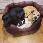 The other day I heard an odd sound in the living room and came in to see Fudge chewing a piece of coal that she had taken out of the container by the fire. And she was consuming it on the (previously unmarked) new beige carpet…. It put me in mind of the day she and her sister (as puppies) ripped open a bean bag bed in the kitchen and looked bemused at the drifts of polystyrene beads wafting across the flagstones – not to mention my own declaration of them as “fuckwits”.