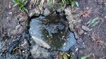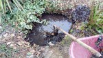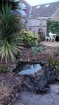 But we got a lot done for what was officially our first proper stint in the new garden. Mrs B wanted to start with the back yard border which last summer was inundated with geraniums that had taken over the place. A new challenge for us here is to sort out a pond, so with images of Monty (or more pertinently Charlie Dimock) in our heads we donned wellies and started dredging our water feature. It turns out that not only was the pond a lot bigger than we thought, it also contained a wealth of plant life that seemed to be choking itself – though not apparently a large number of frogs that were idly lolling in the bottom.