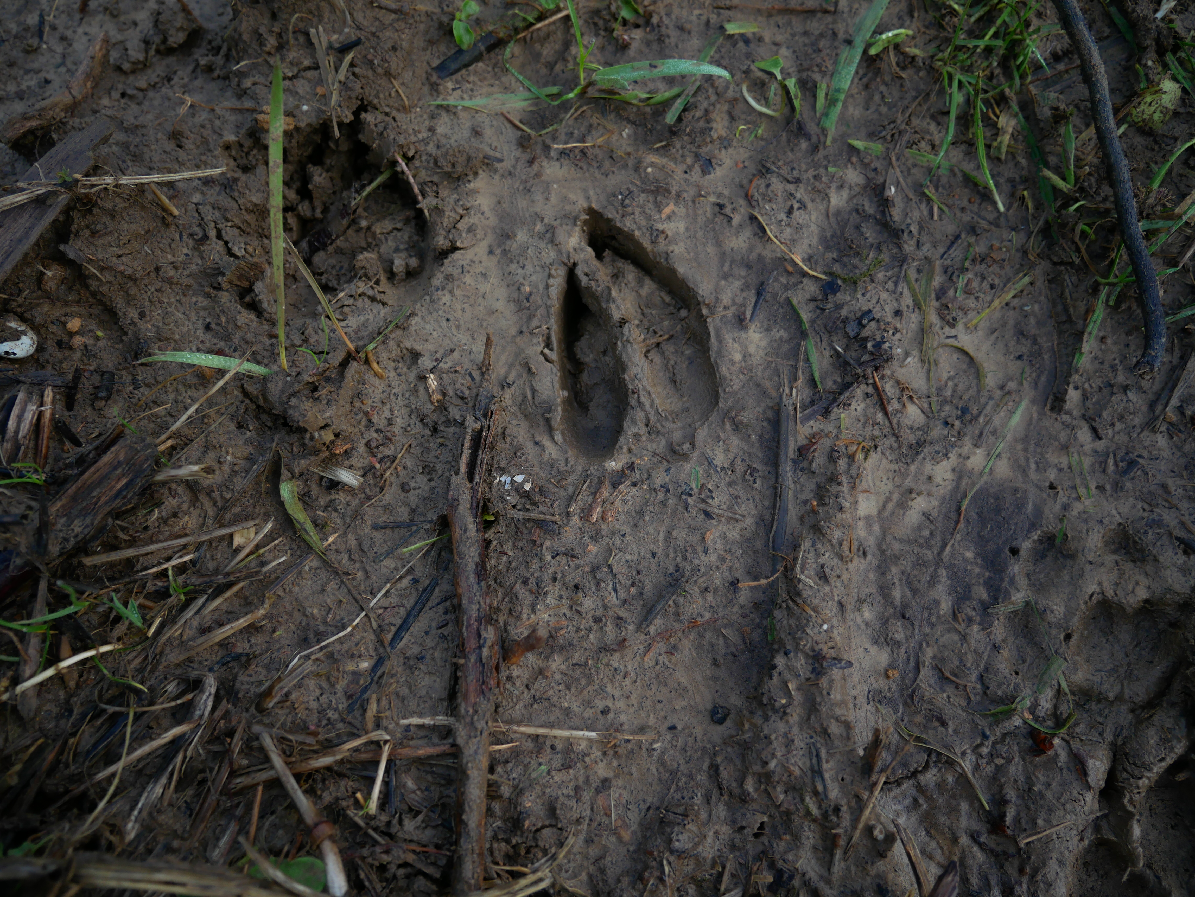 I look at my feet in the soggy verge of the ploughed field and see deer slots. ‘Slots’: it’s a term given to me by my mother. I always think of her when I see these tracks. I take a look, like I am some sort of tracker and see another, tiny paw print that I cannot recognise. Too small and dexterous for a badger or even a rabbit or mole. I take a picture to enable identification at home. I hope I still have my ‘Collins Guide to Animal Tracks and Signs’. It is another remnant of my childhood and I am pleased when Mrs B – as my mother would have done – knows exactly where it is when I get home and I take a look to ID the paw print. It is not easy, but I think perhaps either a stoat or even a hedgehog. I’ll never know – unless a reader actually has a clue from the photographic evidence. Do tell.