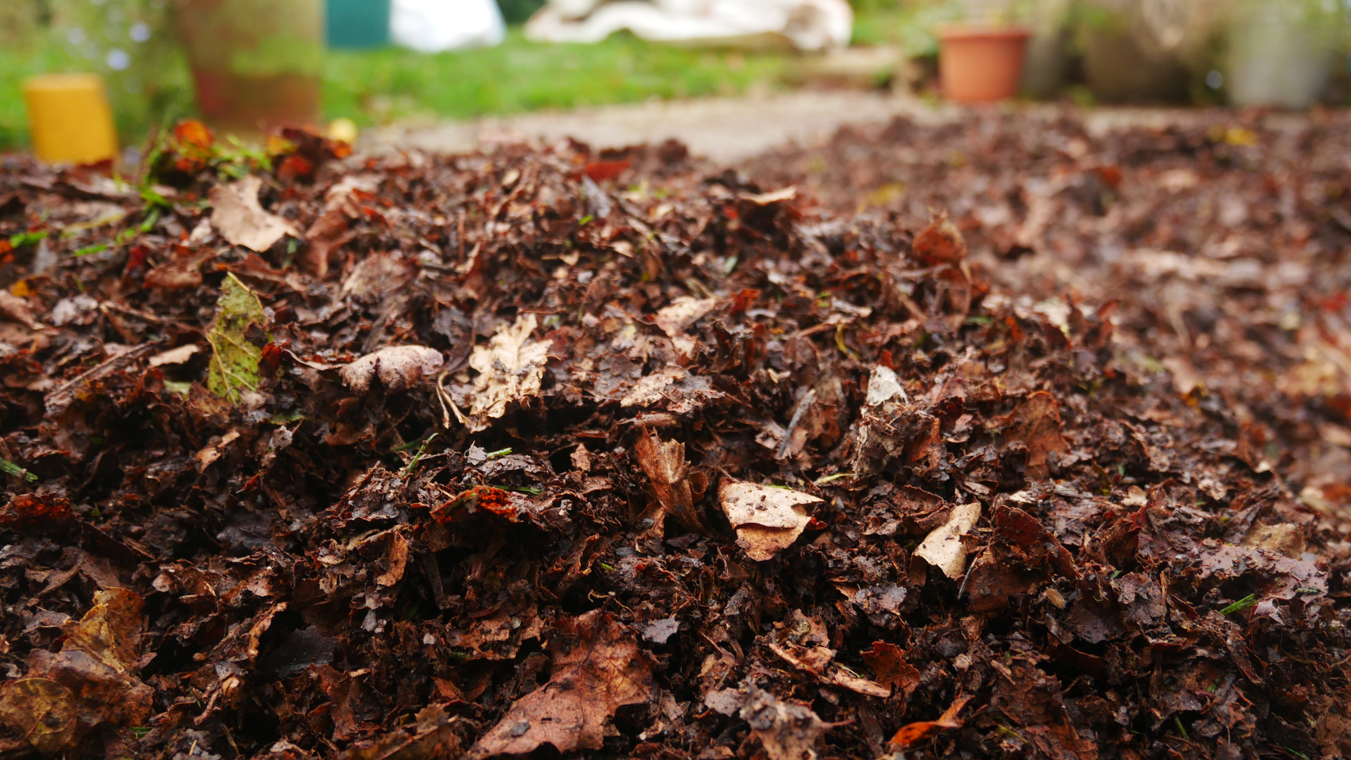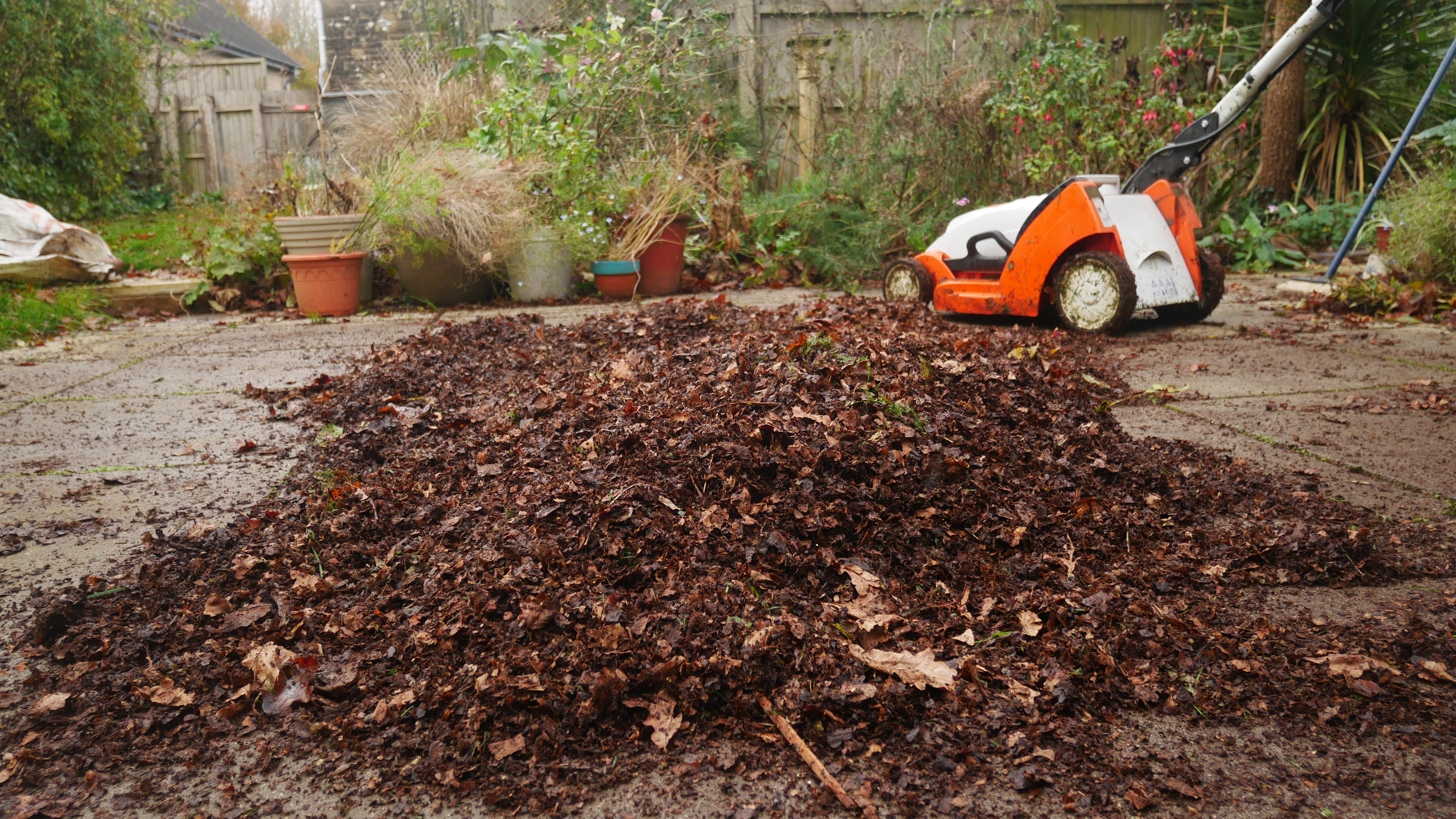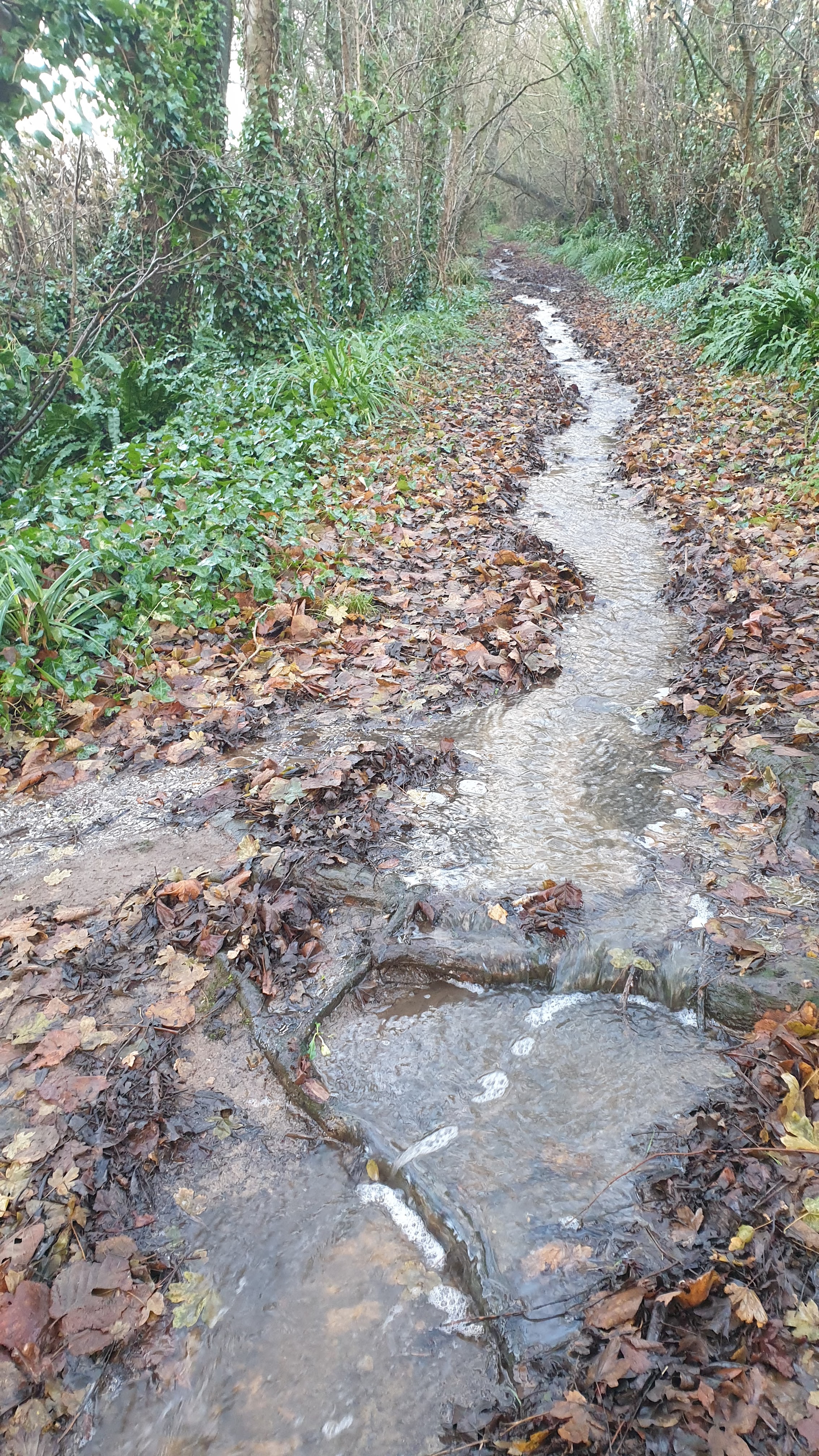 With all this mulching and raking I became a little obsessed about collecting leaves pondering collecting more from around the lanes, but after the frosts of early mid-December, we got the deluge, which has put a dampener on my efforts.