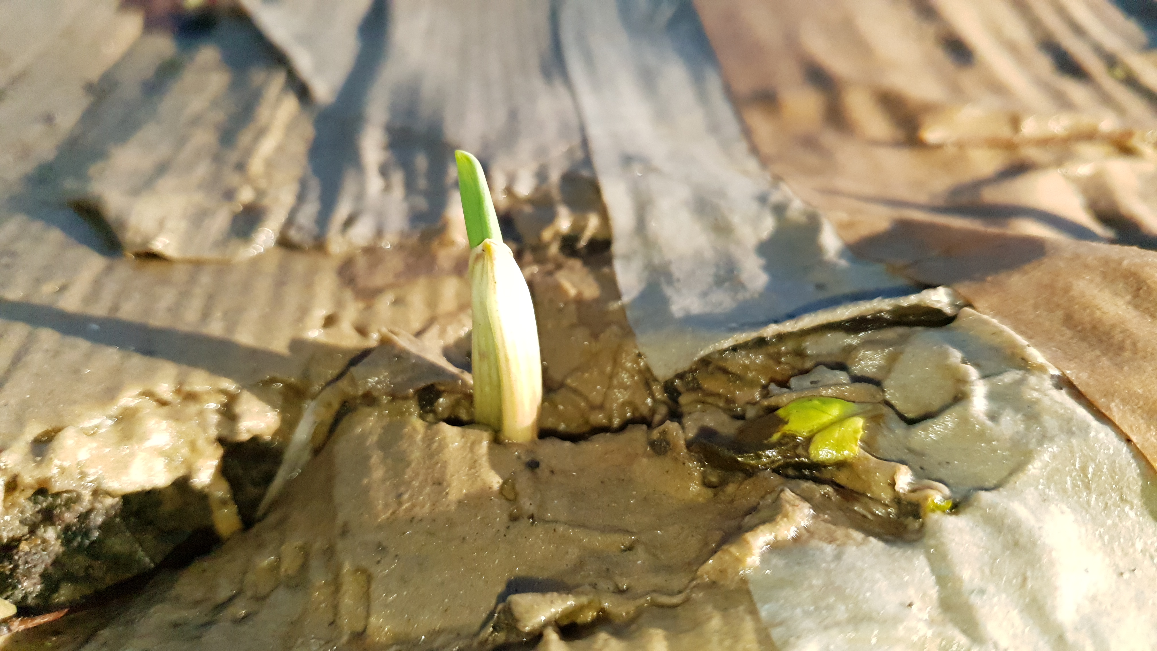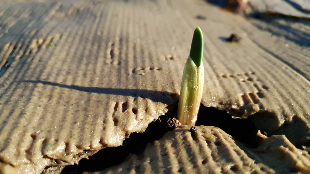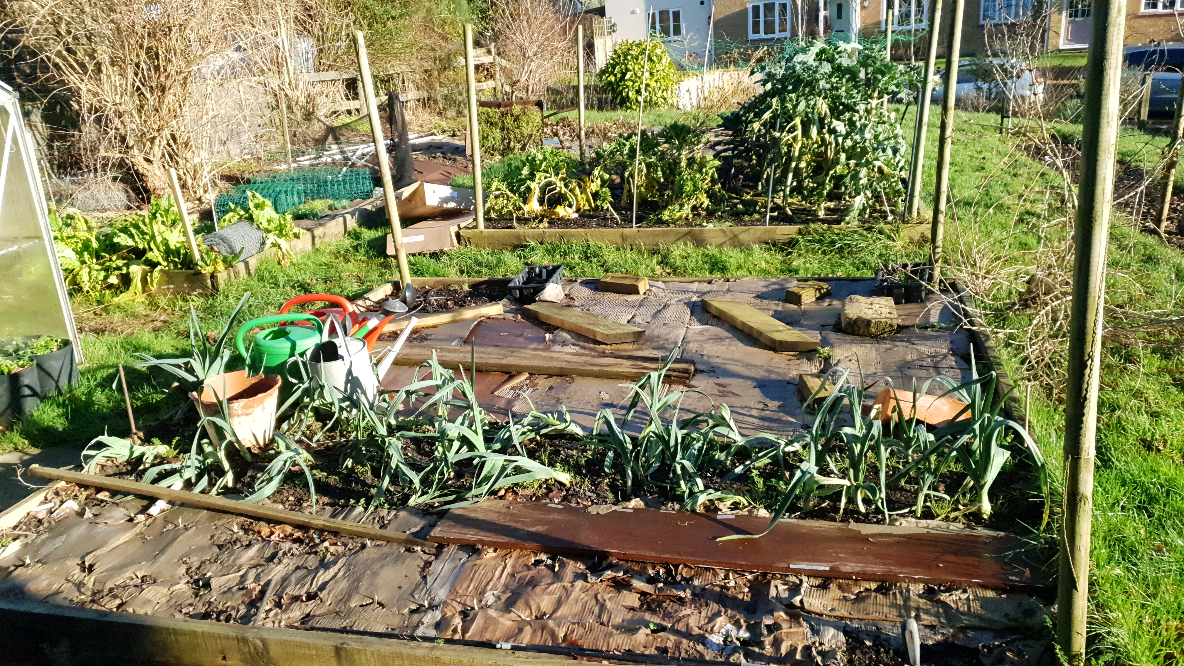 Another job a did manage was to mulch the raised beds with cardboard, which should keep the weeds down ready for spring. I had been late in planting my autumn garlic (which I left until November), so planted them through the cardboard. They had the usual binary choice that Mrs B always suggests plants have: to live or to die. Despite rain, frost and more rain they miraculously they chose the latter and I was pleased to see plenty of sharp shoots poking up anaemically through the dark turf and cardboard yesterday. Nature finds a way.