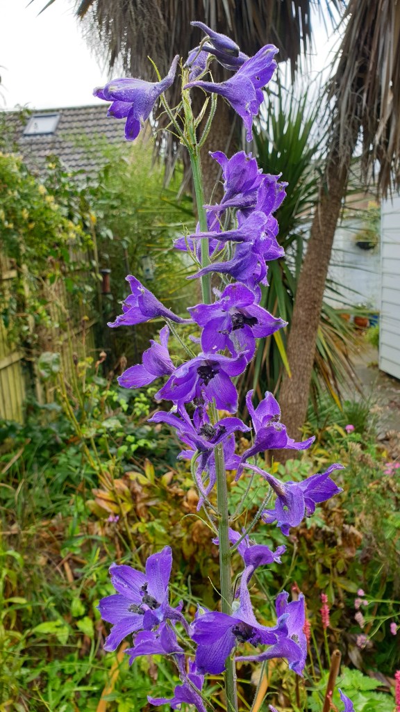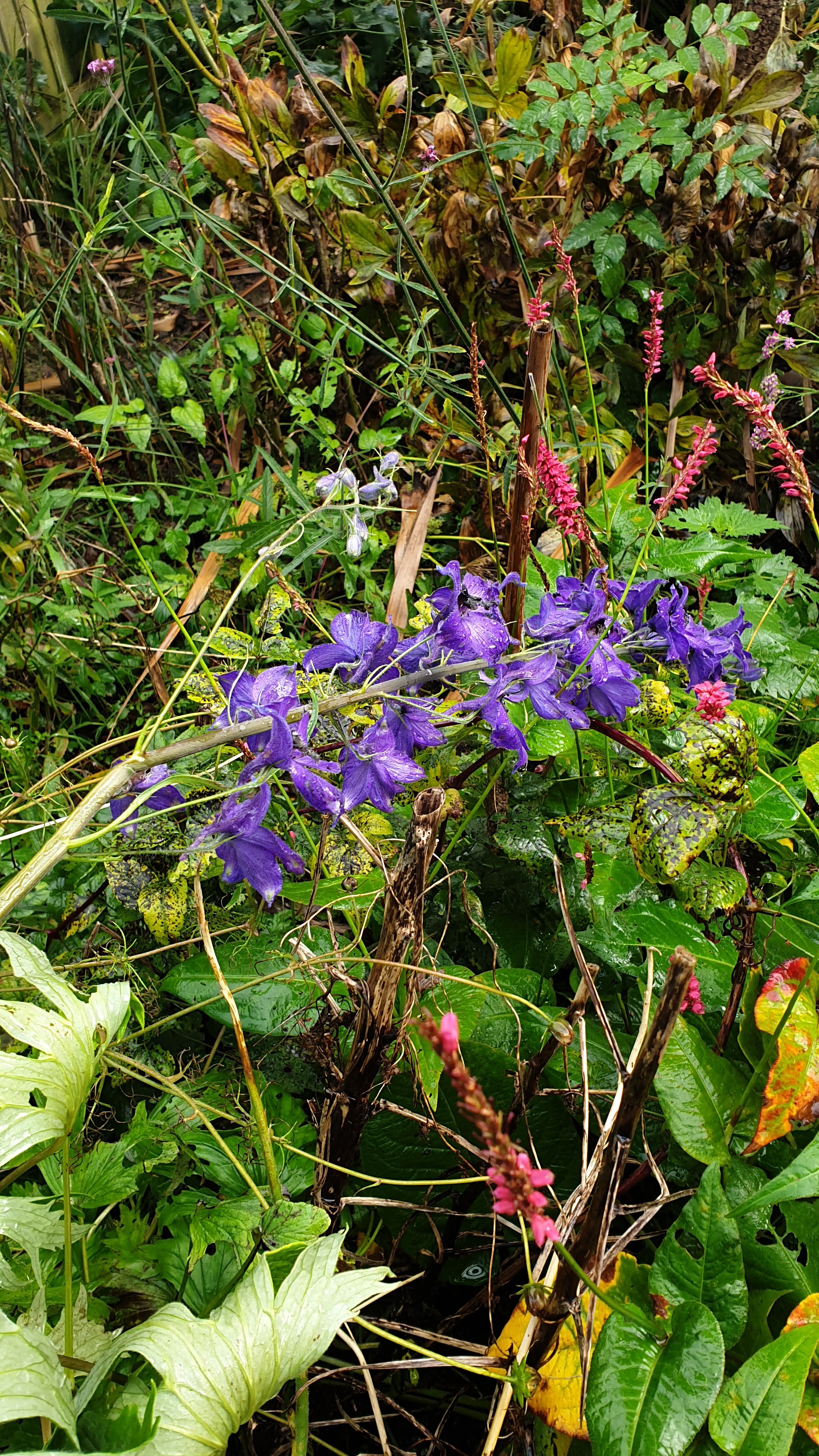 Secondly, not all the flowers remain standing. We lost a delphinium in the storm, but since this was a delphinium that had already flowered in May, we are quite smug about it even having another bloom to be battered in a November storm. This is because, for once, I managed to follow the GW advice to cut back the delphinium as soon as it had flowered in June or July, thus encouraging it to flower again in the autumn. Ta dah!