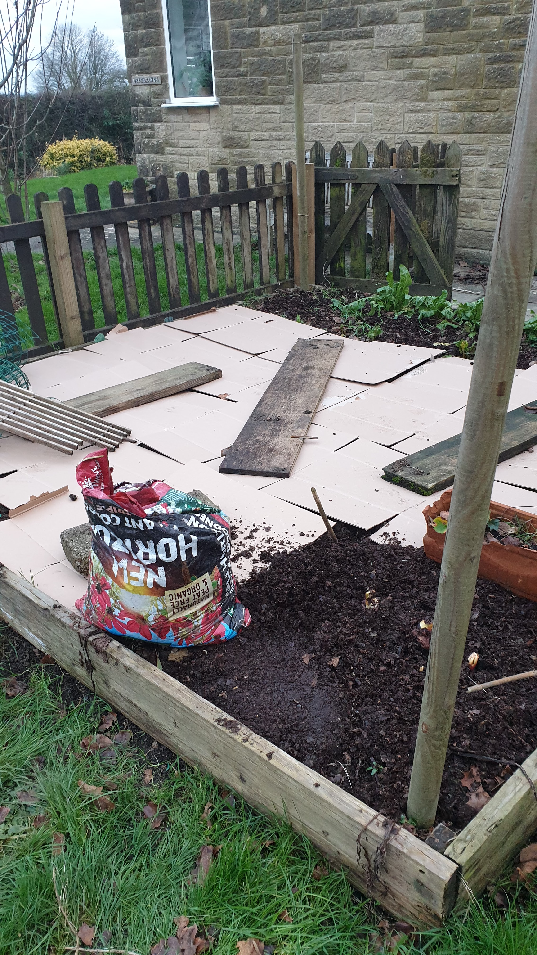 So, it’s back to square one and I will sow all my annuals with spring in mind and ensure that they have the best possible of chance of hitting their straps by the time July looms.  To this end, I spent the last few days of the school holidays prepping the beds, taking out last year’s dead plants, spreading some fine horse manure and covering them with cardboard to keep the weeds down.