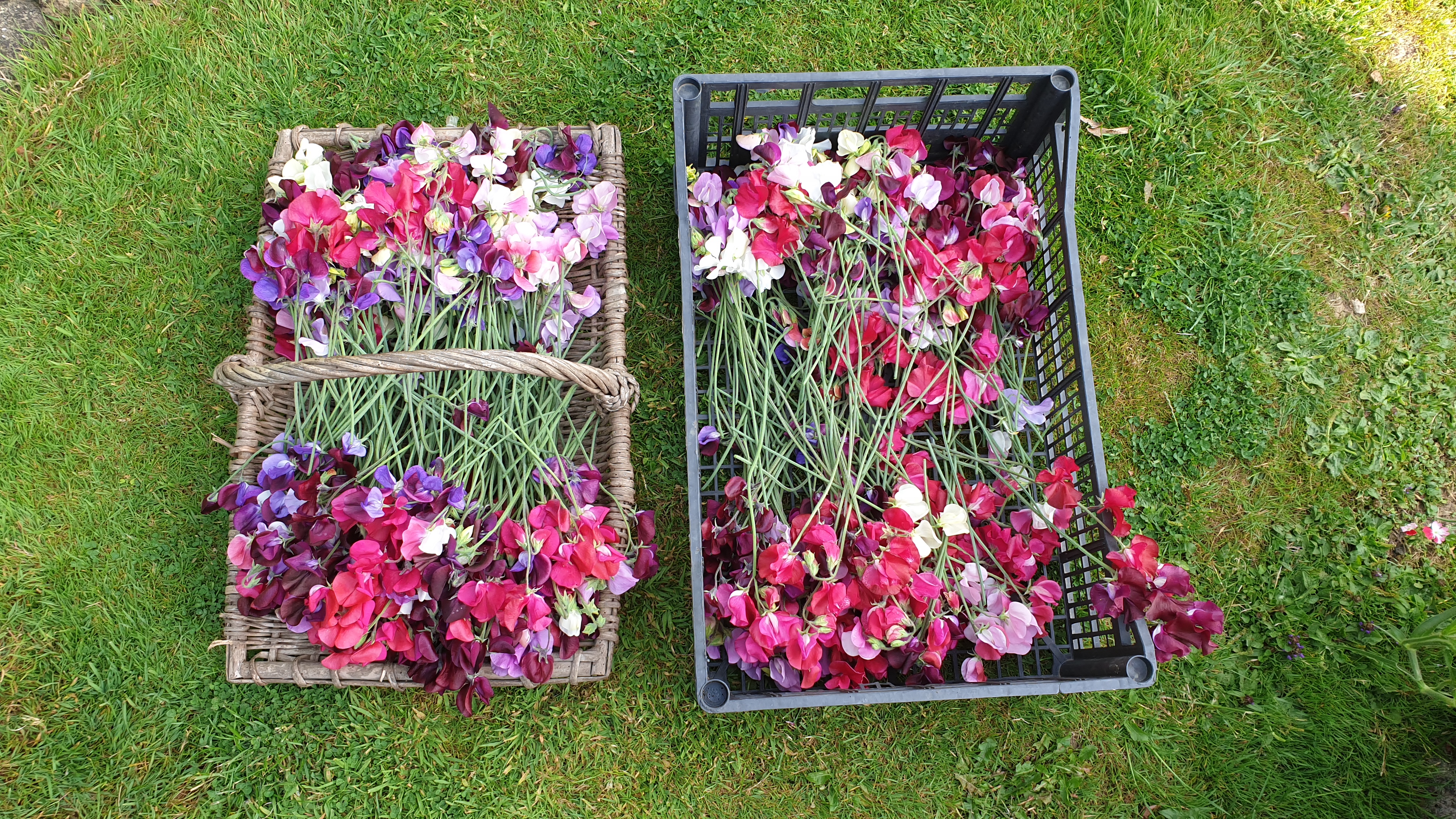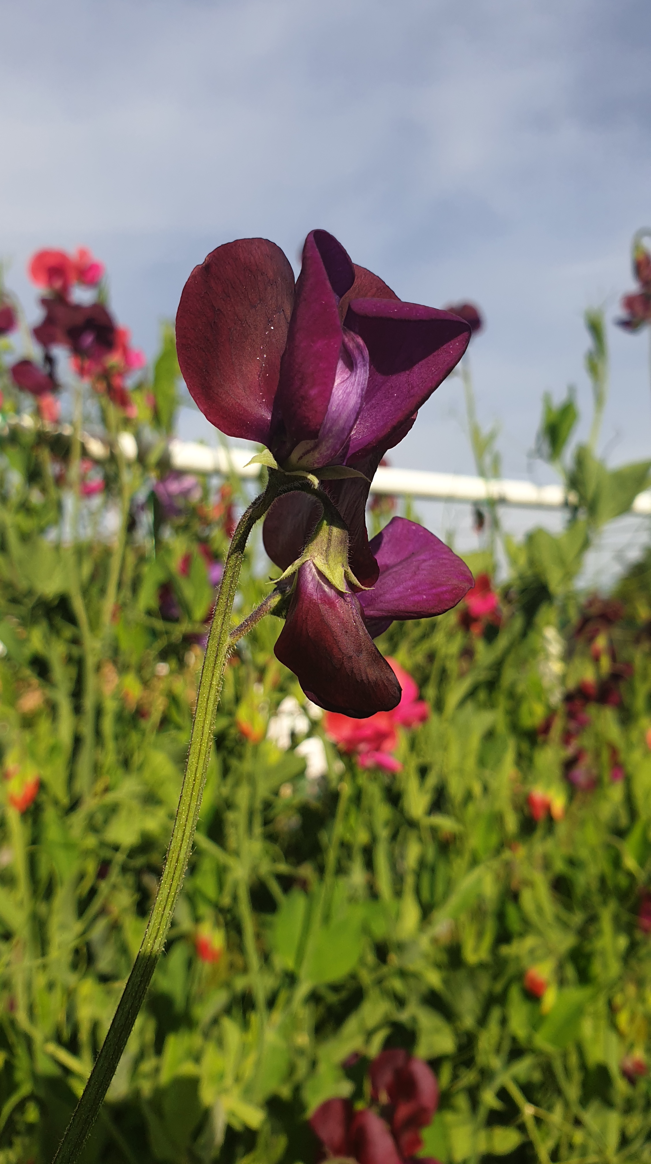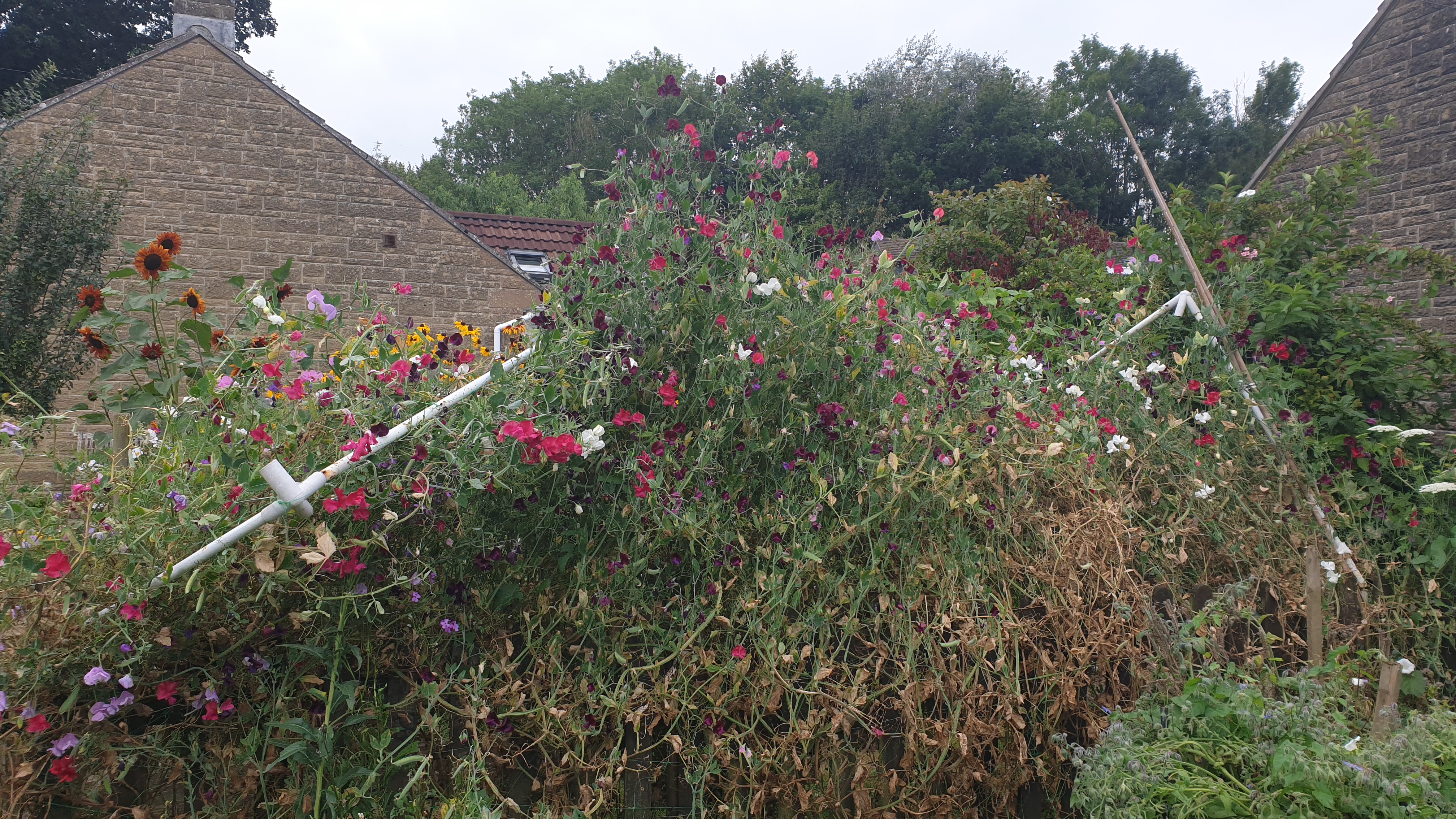 By March they were bursting out of their pots and storage containers and needed more room outside of the greenhouse. I used to think that Sweet Peas are not hardy, but they can survive anything down to -4C, so we took a low risk gamble and planted them out. Despite the wet weather, the first flower appeared on 5th May and by July they were in full bloom, so the job was a good ‘un.