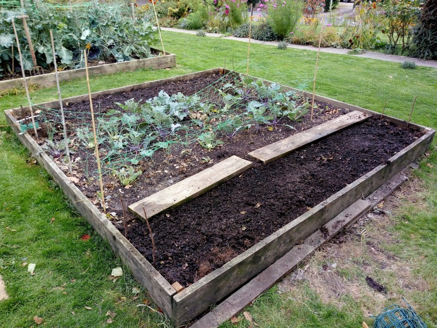 Broad Beans and Garlic either side of the rows of leeks n Khol Rabi